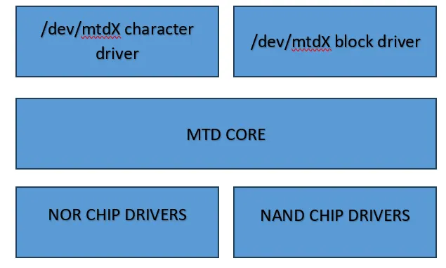 In embedded Linux systems, raw flash memory,such as NOR and NAND flash,is accessed using the Memory Technology Device (MTD) subsystem. MTD provides low-level interfaces for reading, erasing, and writing to flash blocks.