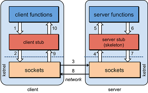 - The function-call model can be used instead of the send/receive (read/write) interface provided by sockets. Users don’t have to deal with marshalling parameters and then parsing them out on the other side.