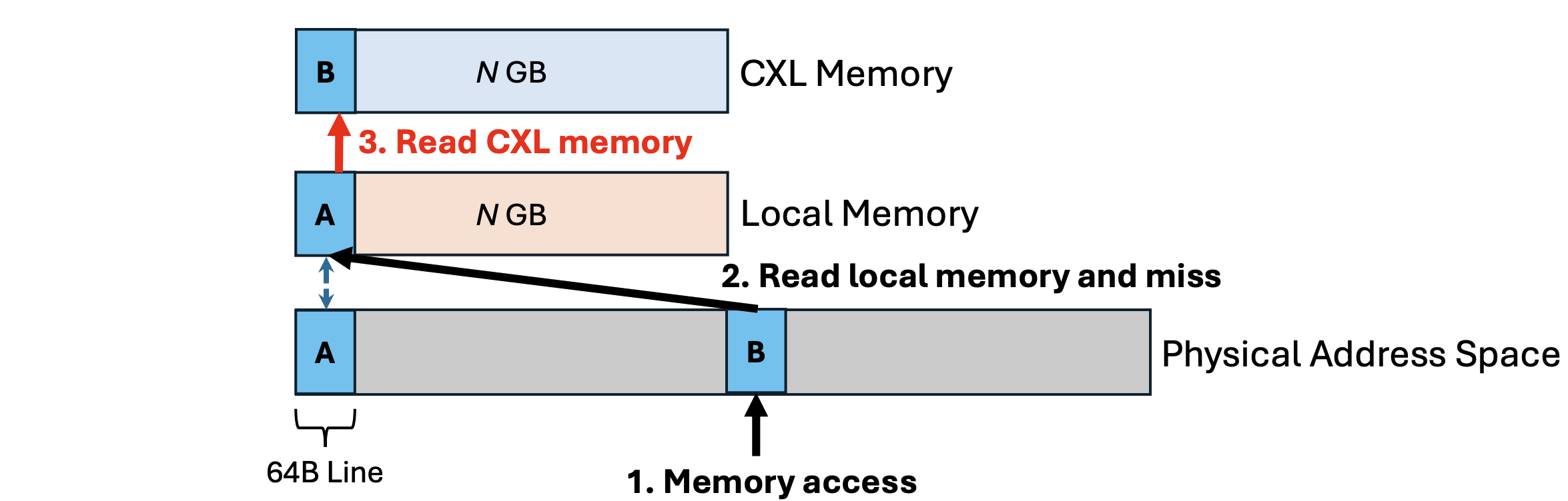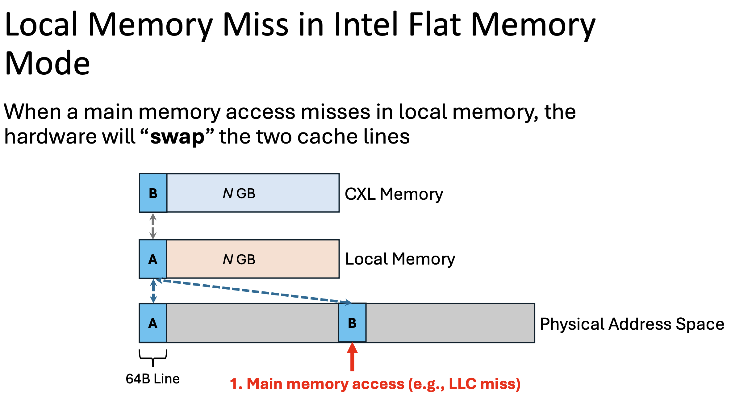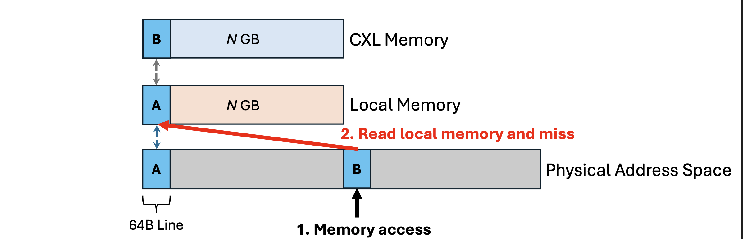 This design fully utilizes the capacity of both local DRAM and CXL memory by placing data exclusively at either of them, but not both. For example, once a cacheline is moved to local DRAM, it will no longer occupy any space in CXL memory.